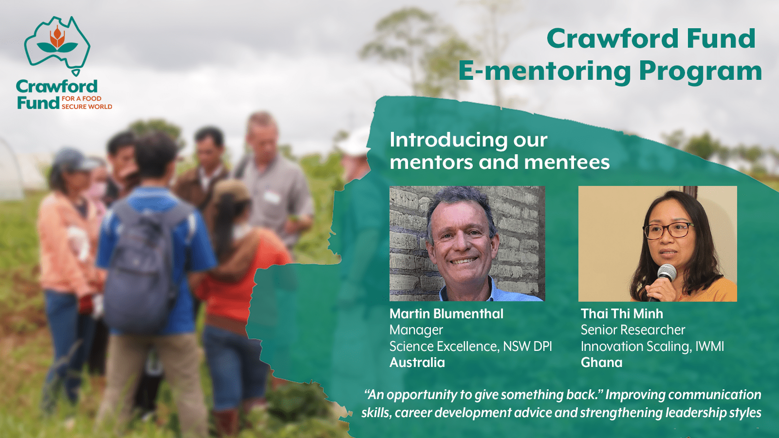 Over the coming months, we will be sharing reflections, in a Q and A style, from our e-mentors and e-mentees and today we present Martin Blumenthal, Manager Science Excellence in the NSW Department of Primary Industries and his e-mentee Thai Thi Minh, a Senior Researcher at the International Water Management Institute based in Ghana.