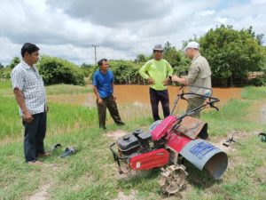 Further, this project is working with established farmer groups, one of which is a farmer co-operative established by small-holder farmers in MuangKai village in Southern SVK. The co-operative stands out in Savannakhet in having a successful business in providing the service of mechanised land leveling, land preparation and combine harvesting. The group understands the benefits of DSR, but adoption is limited by a lack of viable weed control options (they prefer to avoid herbicides) and have expressed interest in multi-row weed cultivation as a possible means to adopt DSR. Working with this group offers a viable means to adoption of the technique.