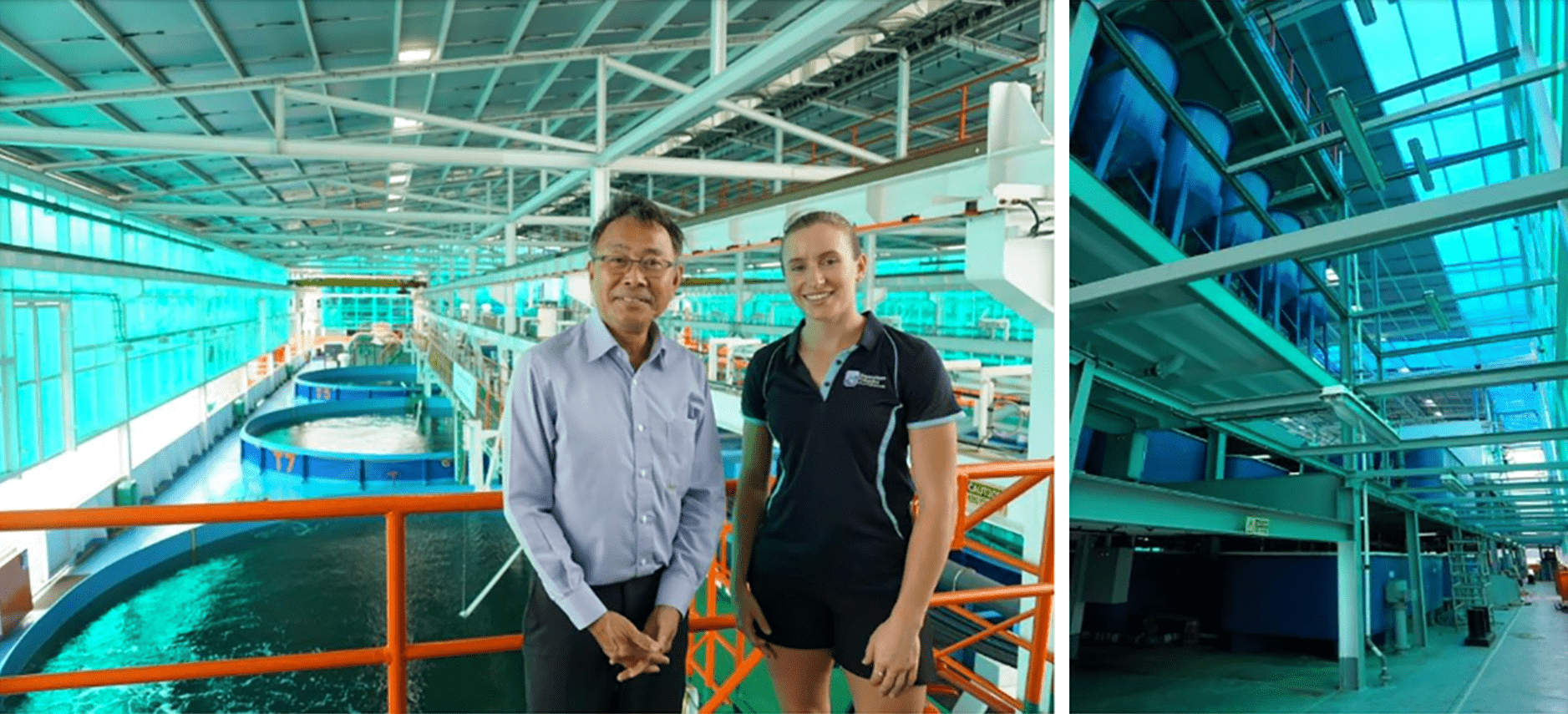 “My PhD project aims to develop foundational knowledge around the impact, importance, and management of viral pathogens in Australian shrimp production to help achieve this pursuit. Through the Student Award, I travelled to Japan, Singapore and Thailand to experience and observe first-hand, on-farm management of emergent disease issues, operational biosecurity, infrastructure requirements and genetic selection technologies in industrial-scale international shrimp aquaculture,” said Phoebe.