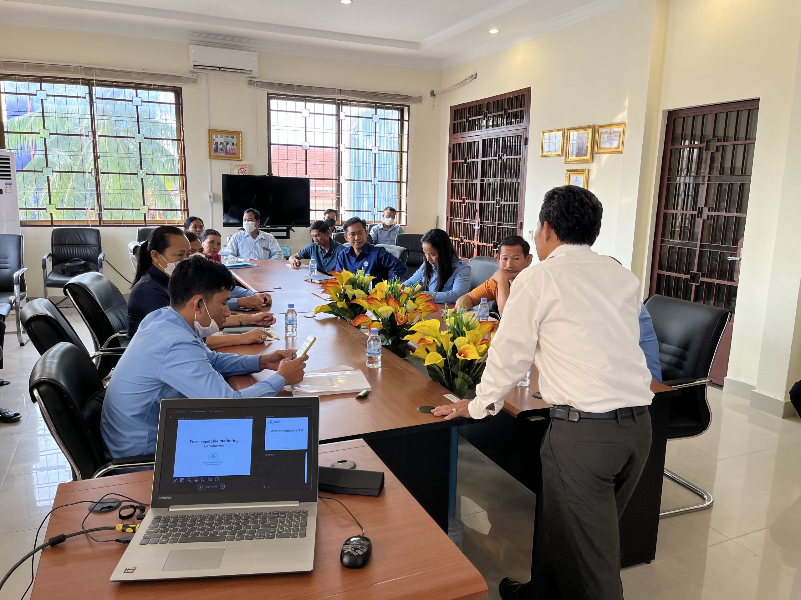 Over the four days, participants were introduced to the marketing concept, business-to-business marketing, product quality, pricing strategies, distribution and logistics and the role of collaborative marketing groups in linking smallholder farmers to markets. They also visited the SAK Community, a cooperative engaged in the production and marketing of organic vegetables to various retailers in Phnom Penh.