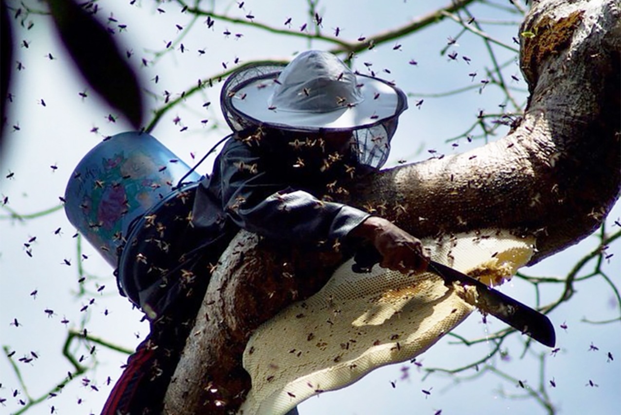 Through thousands of bee stings, carrying tons of honey down mountainsides,