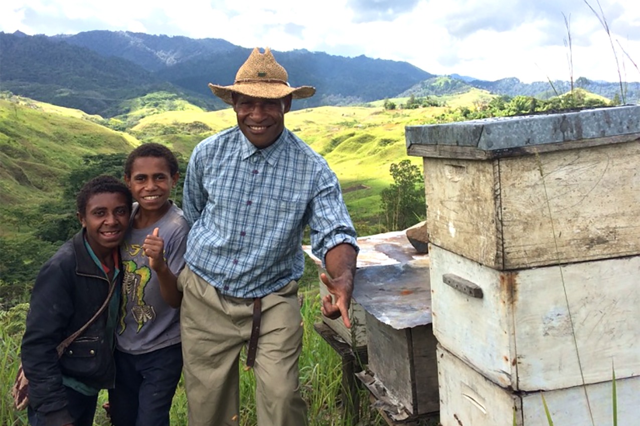I was four months in, 4wd-ing among the Eastern Highlands mountains in Papua New Guinea, working with rural beekeepers when I met Korove. ‘K’ walked me through his village and down to the stream past his bees, all the while introducing me to his friends and extended family. I couldn’t yet speak the language but remembered all I could, and joined in on community happenings. I was learning competence by doing, by plunging in and gathering experience on the run, while bringing to bear those wider perspectives of which we as researchers should pre-eminently be aware. The elders of his village recalled his keen interest in honey bees since he was a young boy. He obtained some beehives from an expat when he was in his early twenties and taught himself how to look after his bees, purely by watching, listening and learning from them. When I met ‘K’ he had just three bee colonies left. I spent my weekends in the village, and with ‘K’ talking all things bees and experimenting with new ideas and materials. He now has more than 15 colonies. But, numbers of bee hives is not the best indicator of success, it is his feeling of accomplishment in being able to achieve his beekeeping aspirations, and that he has been able to replace his leaking roof.