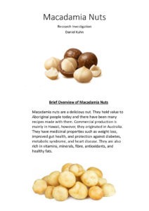 Daniel’s winning entry focused on Australia’s very own native nut, the macadamia. His research covered the nut’s cultivation, use as a food, history with the indigenous people, and similar foods elsewhere in the world. He also included a very tasty sounding Macadamia and Apple Crumble recipe as part of the report!