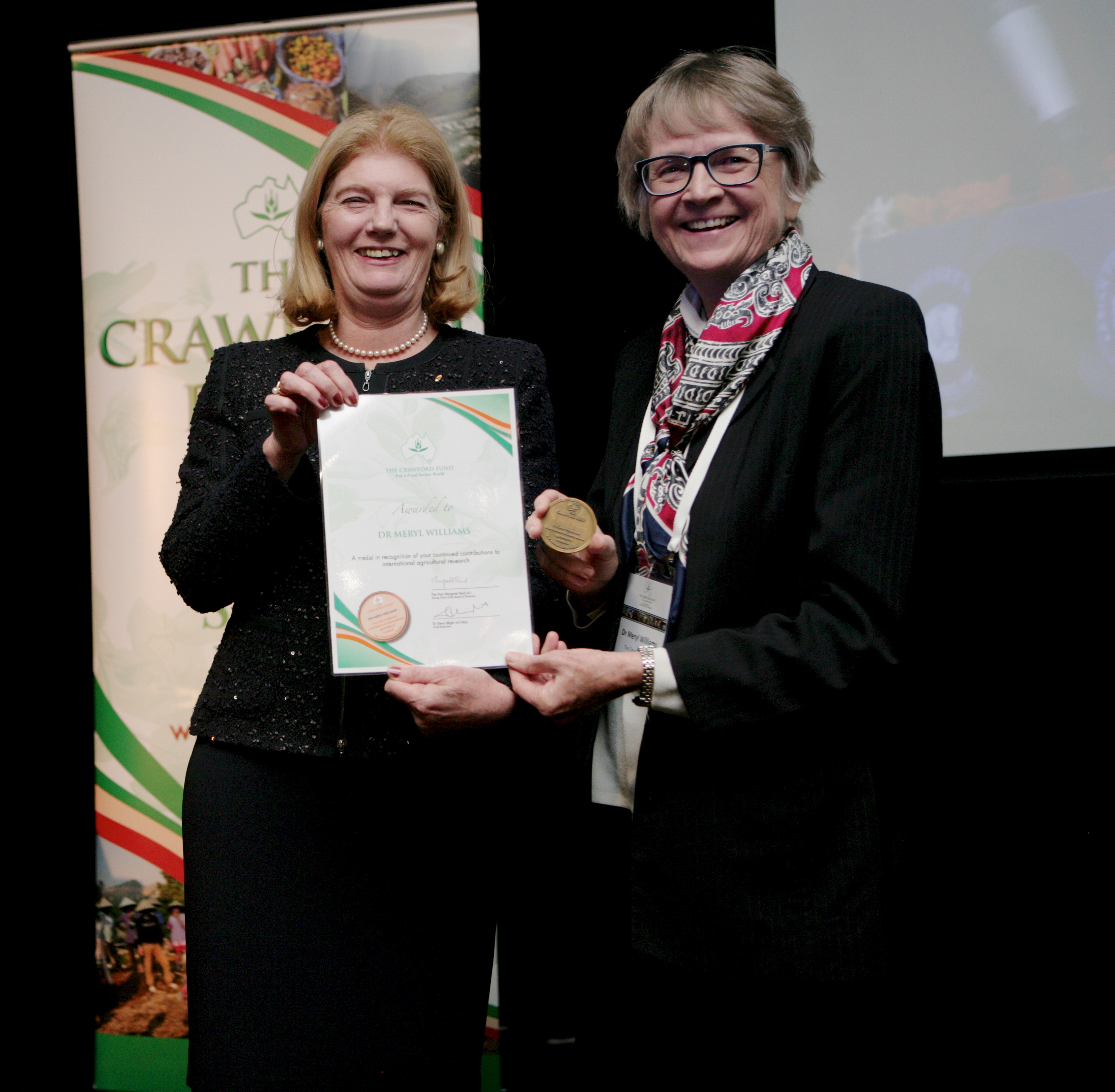 Dr Meryl Williams (PhD, FTSE) was awarded the 2015 Crawford Fund Medal at our annual conference on August 10 by The Honourable Penelope Wensley AC, Chair of the Council of the Australian Institute of Marine Science—an institution formerly headed by Meryl.