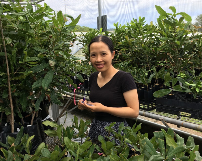 I am a first year PhD student at The University of Queensland (UQ) and am working with the macadamia breeding program of Queensland Alliance for Agriculture and Food Innovation (QAAFI), UQ. Before commencing my research at UQ, I was working at the Department of Molecular Biology, which belongs to Vietnamese Academy of Forest Science since 2008, where I managed and participated in projects related to apply molecular tools for forest tree breeding improvement such as Eucalyptus, Pinus, Acacia, ect. I’ve also completed my Master of Biotechnology at UQ in 2013 with a small project on analysis relationship between Macadamia and wild relatives based on the whole chloroplast genome sequence.