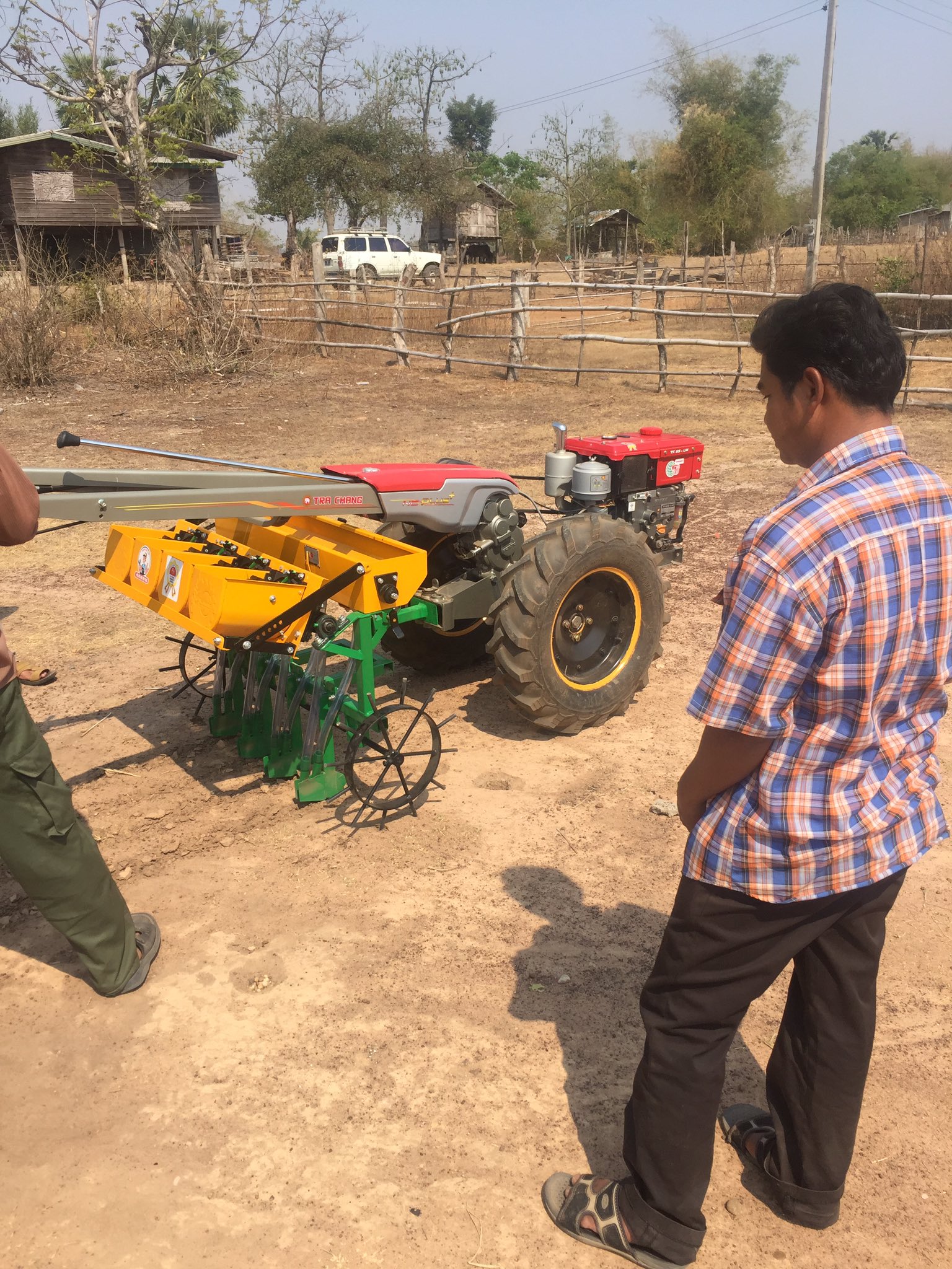 At the end of May, Phetsamone, Souliphone and Ms Khetsana, staff members from the Provincial Agriculture and Forestry Office (PAFO) in Savanakhet in Laos, went back to the villages that had received the seeders and visited the recipients of the seeders. They also applied the name stickers of the donor to each seeder; supplied the farmers with a spanner set, grease gun and lifting chain that accompany the seeder; inspected the fields that have been seeded so far and discussed successes and problems with the farmers.