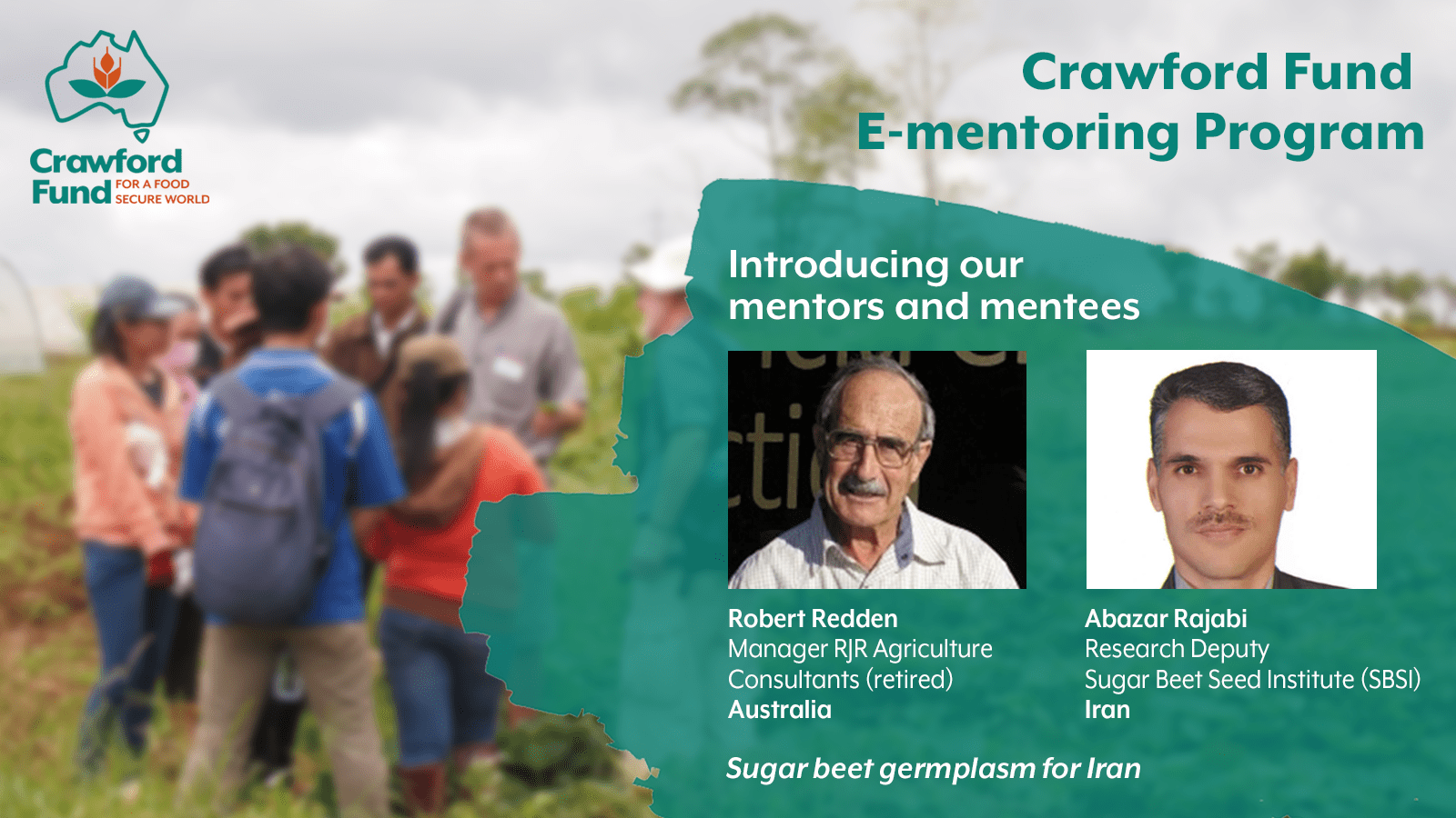 We now present our latest e-mentoring pair reflecting on their experience, Robert Redden, Manager, RJR Agriculture Consultants, and Abazar Rajabi, Research Deputy at the Sugar Beet Seed Institute (SBSI) in Iran.
