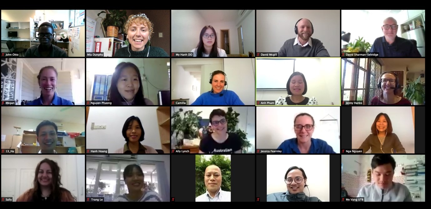 Engaging with the Fund’s long term partnership with the Australian Volunteers Program, six Australian volunteers have been identified and partnered with a research counterpart in Vietnam to work through scenarios and research problems. The partnering of participants is a central component of the online workshop as the partners work together on workshop materials and activities, and also provide feedback on their own research. By offering cross-cultural and often cross-disciplinary feedback to their partner, the participants have been able to engage and learn from one another, while forming friendships and professional networks. Workshop participants have a range of experiences in agriculture and international development, from economics to animal science to horticulture. One of the most important roles was held by volunteer Anh Pham as the Senior Research Support through the Australian Volunteers Program. Anh is an Adelaide based researcher who is helping to translate complex ideas, build engagement across different cultures and bridge language gaps.