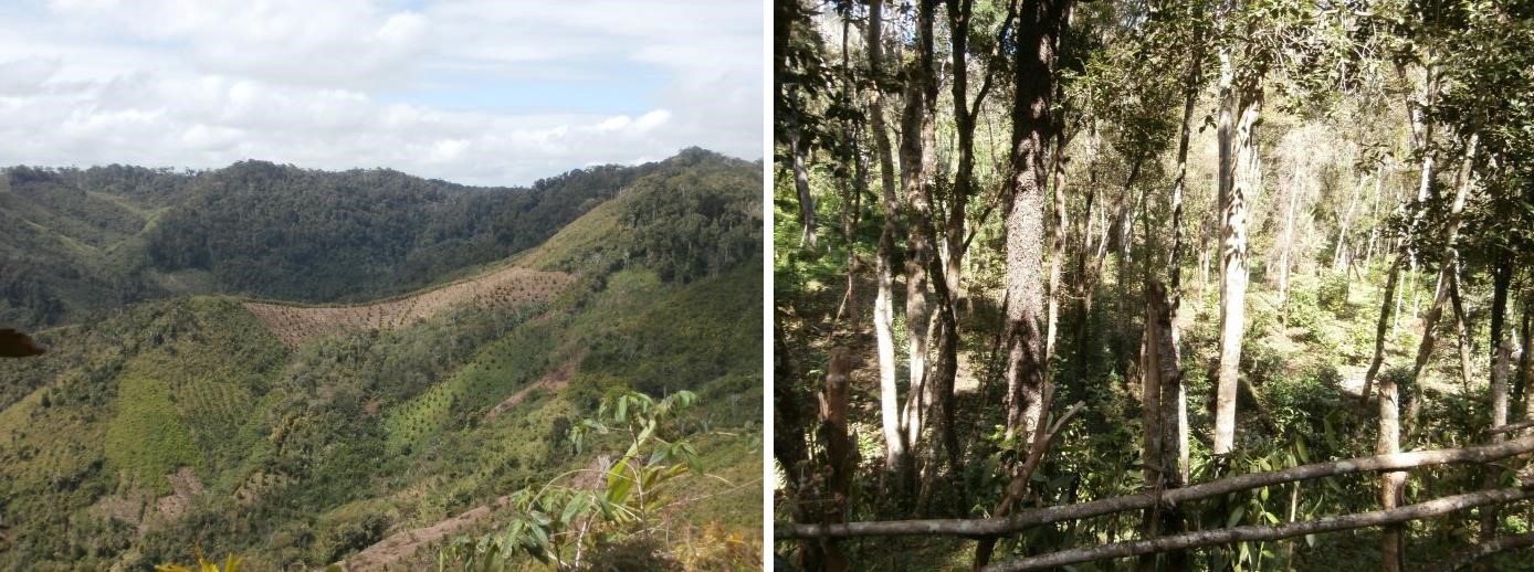 Culture of cloves on secondary forest (left) and culture of vanilla inside humid rain forest (right) in Madagascar
