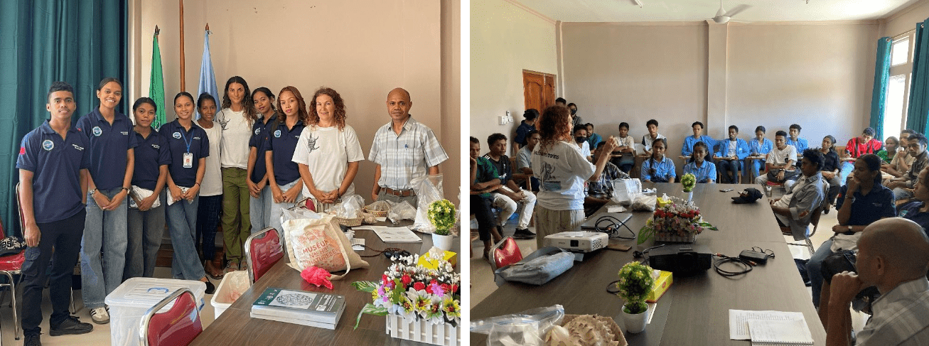 Professor Ariadna Burgos from IRD, the Muséum National d’Histoire Naturelle in Paris, and WorldFish Timor-Leste led a workshop at UNTL in Hera alongside Benedetta and Alcira Albino from Atekru, Atauro Island, an expert gleaner and fisherwoman who shared her knowledge of shellfish and traditional fishing practices.