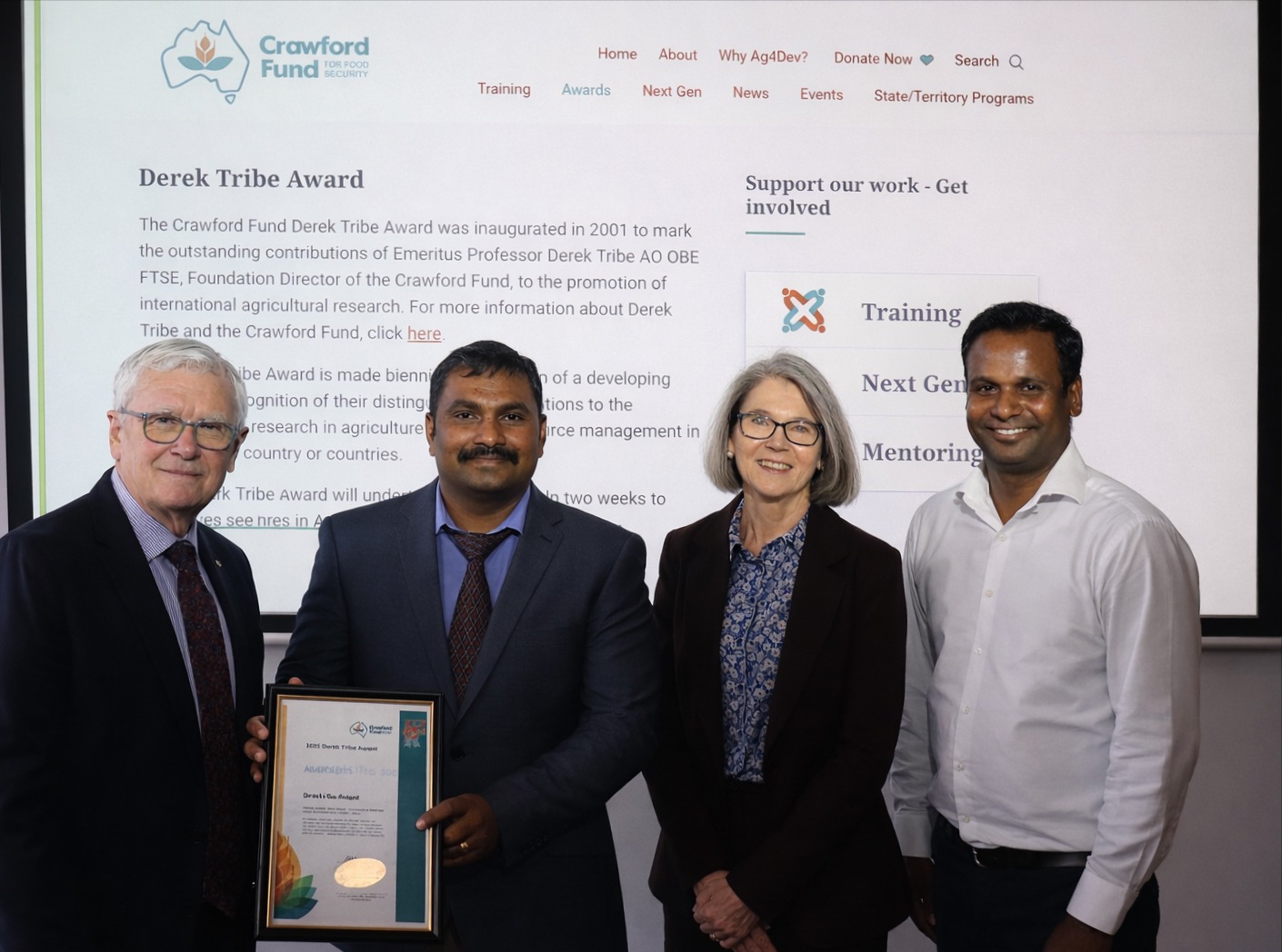 “The Crawford Fund congratulates Dr Govindan on his lasting impact on global food security and natural resource management. We are proud to be highlighting his work with the Derek Tribe Address, his visit, and to further raising awareness of the benefits to Australia and developing countries of agricultural research for food and nutrition security,” said Shaun Coffey, CEO, the Crawford Fund for Food Security.