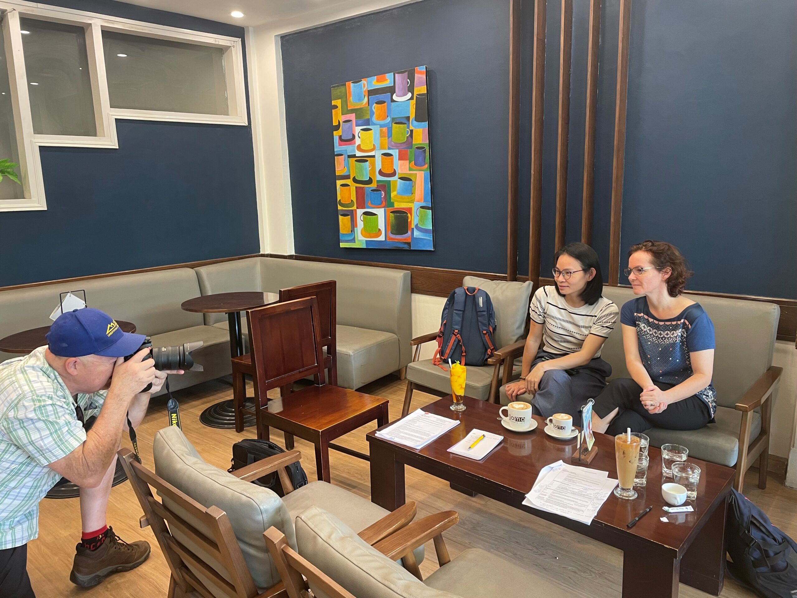 Dr Tran Thu Ha, a speaker from our 2024 Conference, leads the DFAT supported “Transforming Rice Value Chain (TRVC)” project, and she explained to Chris the work to improve the lives and livelihoods of smallholder farmers in the Mekong Delta, with a focus on rice and climate resilience. And CIFOR-ICRAF economist Dr Estelle Biénabe, introduced us to the ACIAR project on improving the sustainability of robusta coffee and black pepper farming systems and value chains.
